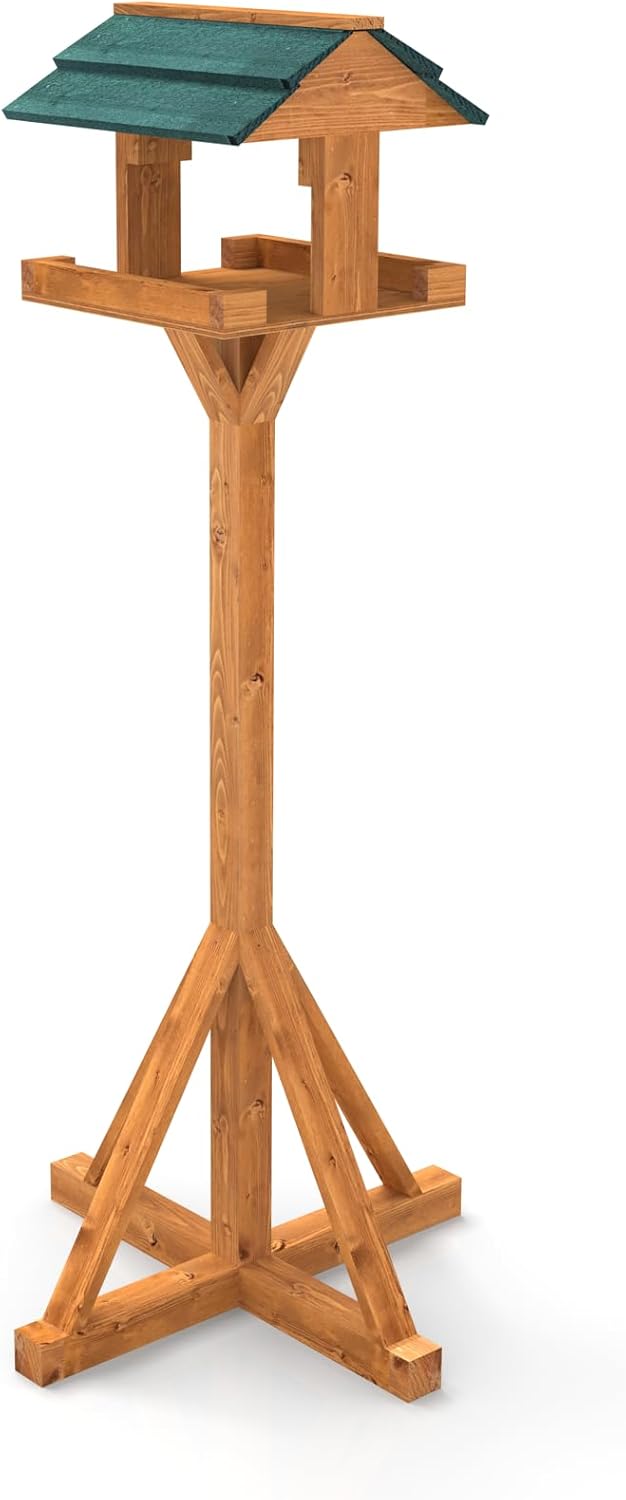 A bird table is a great addition to a garden. They are elevated so protected from pests and reducing the risk of disease spread. There is usually a roof to protect the food from rain and open sided so the birds can look out for predators. Its also nice to be able to monitor the food and view the birds that visit.